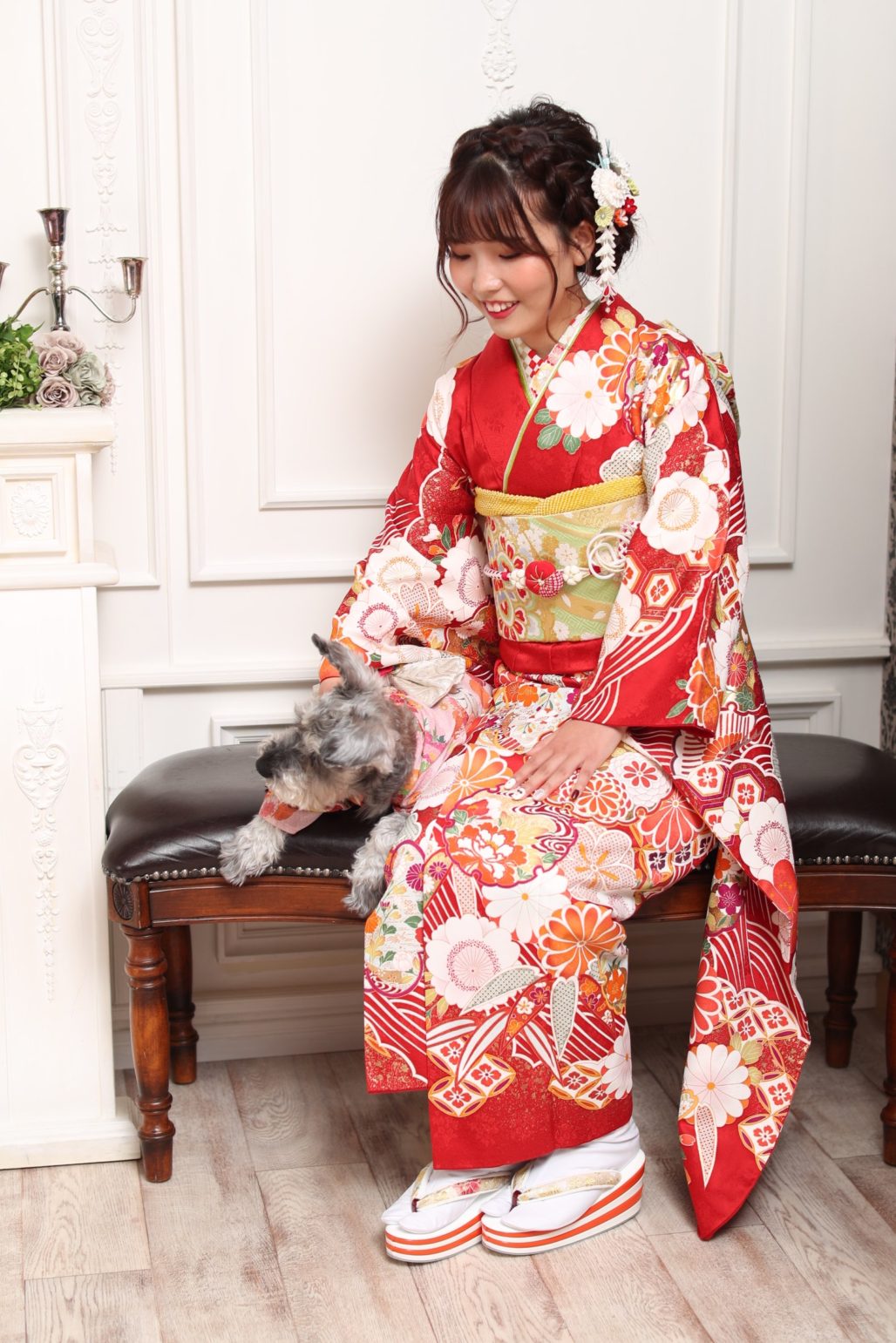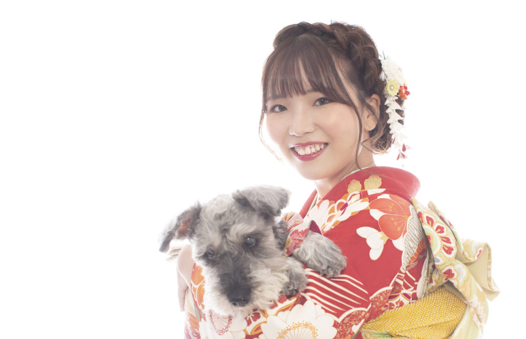 晴れの成人のお祝いのお写真に大切なペットとのお写真はいかがですか?