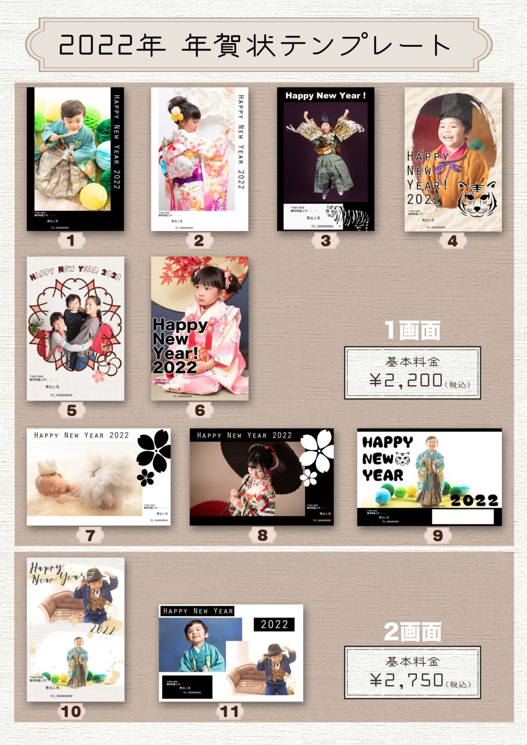 スタジオ瞬では撮影いただいたお写真で年賀状の作成をしています。